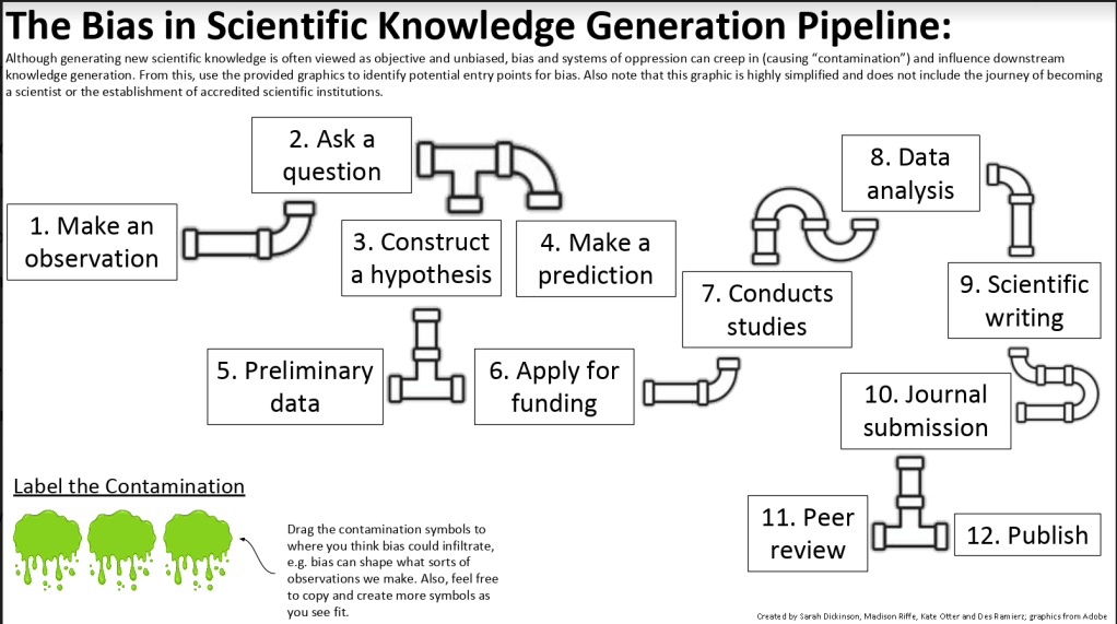 I like to add the “Repeat” section at the end because it is a loop in which scientists find themselves rewarded for a specific way of thinking that perpetuates to gain future similarly contaminated rewards such as publications, funding, formal acknowledgement, speaking invitations, etc.